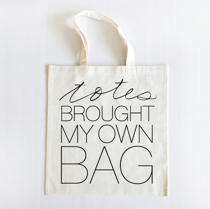 Tote bag collection promoting green living practices.